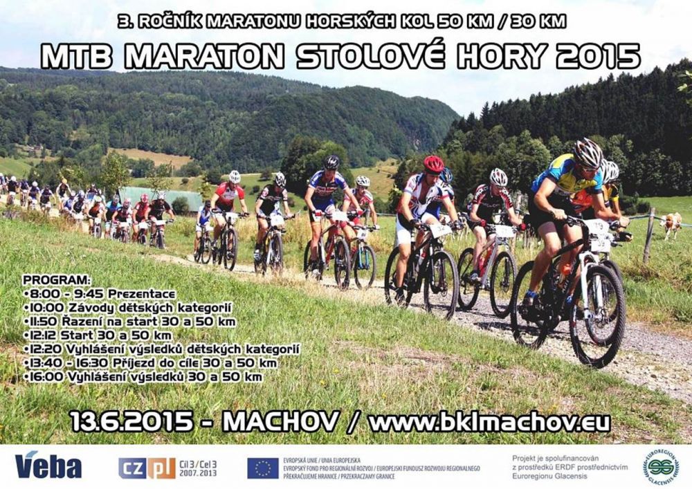 13.6. 2015Přijeďte si zabajkovat do krásného prostředí na třetí ročník našeho maratonu. Na výběr jsou okruhy 30 a 50 km a také závody dětských kategorií. Nejdelší okruh vede jednak chráněnou oblastí Broumovsko a také Parkem Narodowym Gór Stolowych (POL) v malebných lokalitách kolem pískovcových skal a smrkových lesů. Trasa je středně náročná a je vhodná pro širokovu veřejnost.